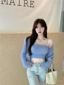 时尚套装申瞅年新款秋冬季御姐针织小吊带长袖短款上衣...