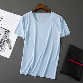 男士冰丝无痕T恤男丝滑凉爽透气短袖上衣大码圆领薄款...