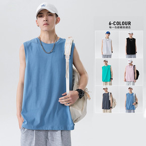 纯棉男士背心2022夏季新款日系潮牌无袖T恤宽松休...