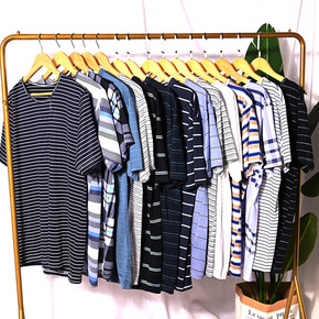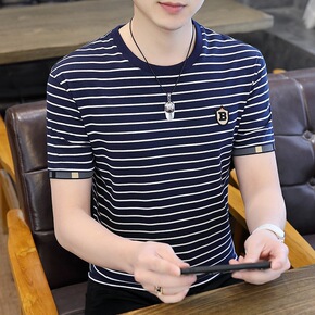 条纹男士t恤短袖2022年夏季新款潮流宽松棉半袖潮...