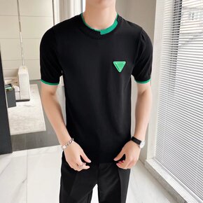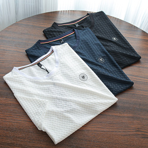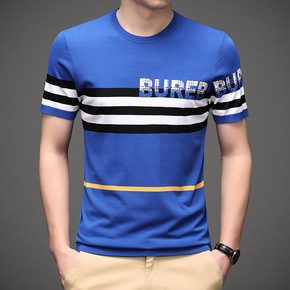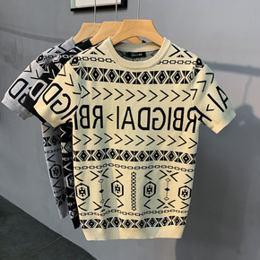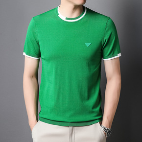 夏季新款圆领冰丝针织短袖T恤男打底潮流欧货休闲男装...
