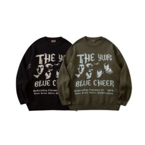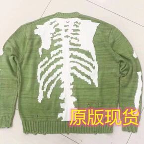 跨境欧美街头嘻哈提花毛衣街头宽松骷髅提花针织套头长...