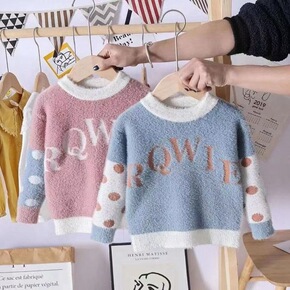 2022时尚童装水貂绒毛衣新款套头可爱儿童韩版圆领...