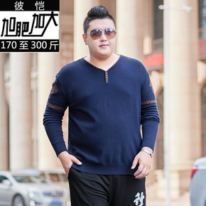 肥佬男装加肥加大码宽松毛衣秋装特大号圆领针织衫套头...