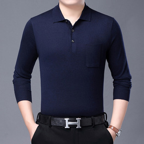 男装爸爸装长袖T恤男秋装休闲中老年上衣男士polo...