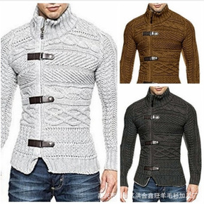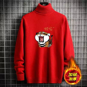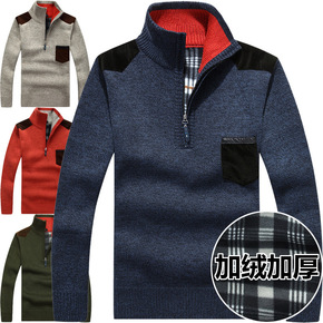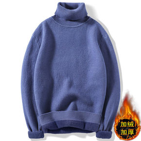 批发冬季男士毛衣高领大码套头加绒加厚保暖毛衫男针织...