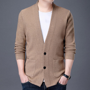 【劲刚琅】秋季新款针织衫V领男开衫毛衫外套抗起球韩...