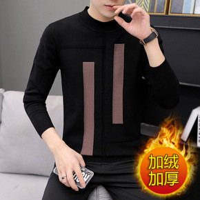 男士秋冬季高领毛衣加绒加厚圆领中青年针织衫套头宽松...