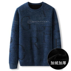 2020冬季厚款男式羊绒衫中年男士圆领纯色大码休闲...