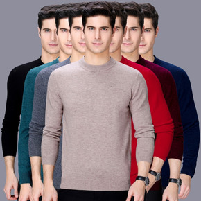 羊绒衫圆领加厚套头毛衣男士圆领商务长袖宽松青年打底...