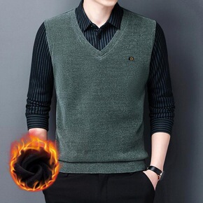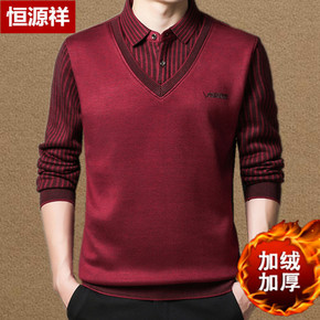 恒源祥秋冬季新款中老年男加绒加厚假两件毛衣本命年爸...
