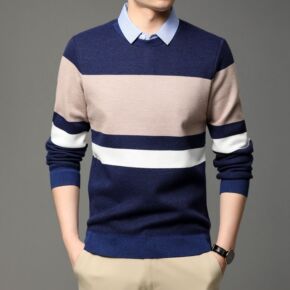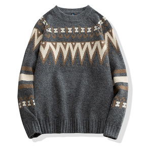 跨境外贸男装2021春季新款宽松套头长袖休闲羊毛衫...