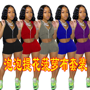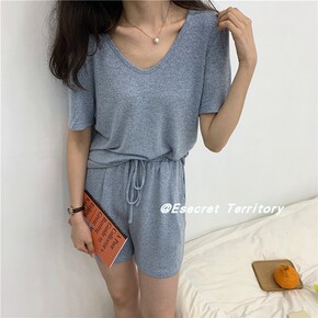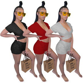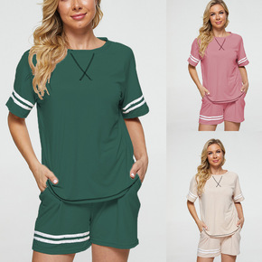 欧美外贸亚马逊速卖通新款T恤套装圆领休闲套装短裤短...