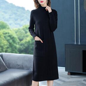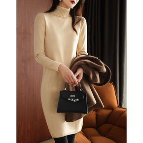 超厚高领针织长款过膝毛衣冬季修身中长裙毛衣裙外套包...