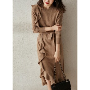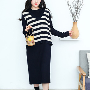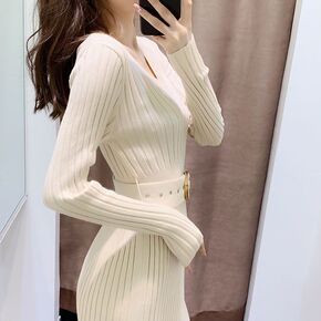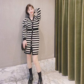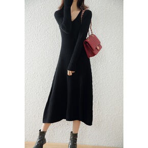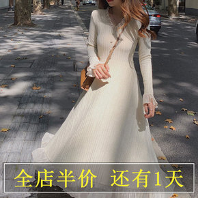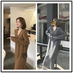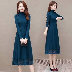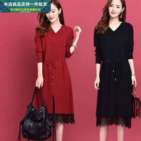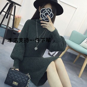 针织连衣裙女2021秋冬装新款韩羊毛衫中长裙子宽松...