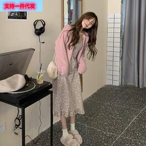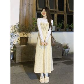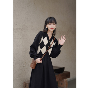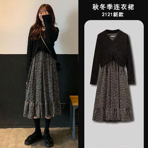 春秋季甜美毛衣背心裙收腰气质内搭过膝长款碎花连衣裙...