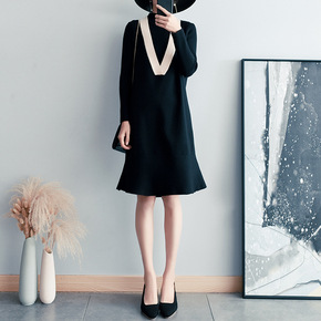 大码女装胖连衣裙女2022春季新款撞色假两件修身显...