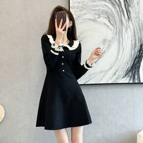 温柔风气质蕾丝拼接针织连衣裙女秋冬茶歇法式桔梗收腰...