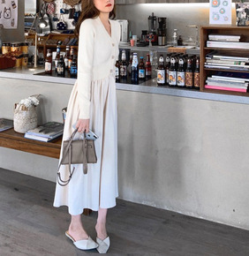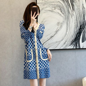 [芭缇诺]2021秋装配大衣的毛衣过膝长款赫本风v...