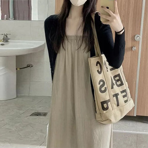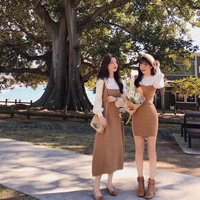 单件/套装 温柔文艺气质显瘦收腰毛衣针织吊带背带裙...