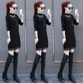 中年女秋冬修身气质针织衫连衣裙小个子显瘦毛衣内搭半...