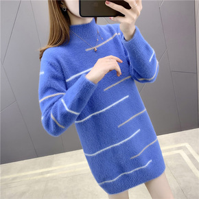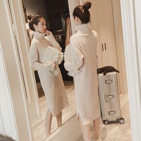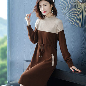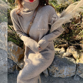 针织连衣裙女2020冬季新款韩版高领长袖宽松显瘦毛...