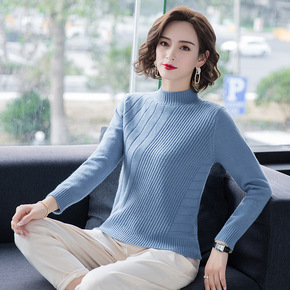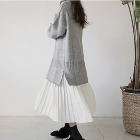 毛衣女装2021新款针织拼色外穿打底衫冬季中长款半...