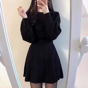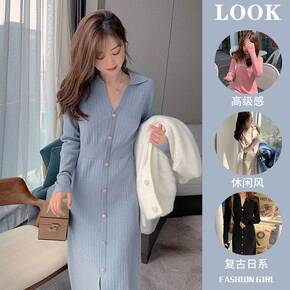 2022新款春秋修身气质打底针织连衣裙女法式配大衣...