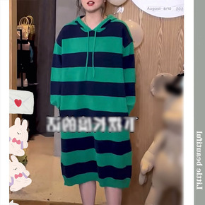 2021年秋季新款时尚温柔风斗篷毛衣外套+吊带连衣...