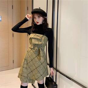 2022春秋季新款女洋气时尚毛衣打底衫中长款背带裙...