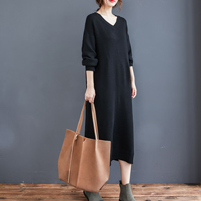 2022秋冬新款韩版百搭大码女装 休闲中长款V领毛...