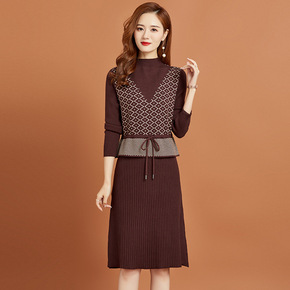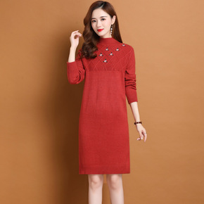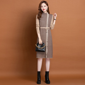 2020冬天加厚阔太太针织连衣裙中长款秋冬款宽松遮...