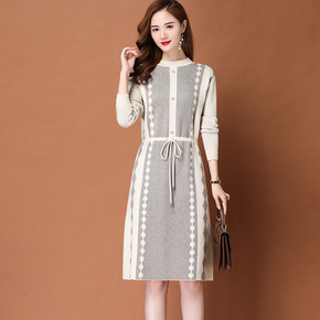 收腰系带连衣裙秋冬显瘦气质配大衣的毛衣裙洋气御姐风...