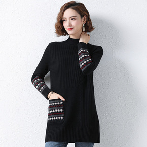 中长款毛衣女秋冬2021新款半高领宽松外穿洋气长袖...