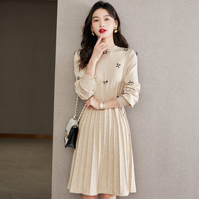 秋季针织连衣裙秋装2021年新款女神范中长款毛衣裙...