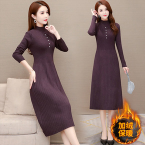2021秋冬季中长款高档打底连衣裙女加绒加厚配大衣...