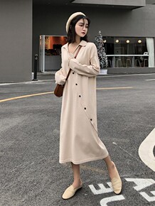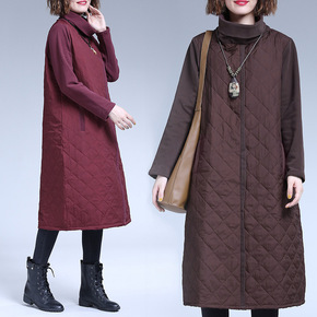 秋冬棉衣女加厚夹棉连衣裙复古文艺过膝中长款宽松打底...