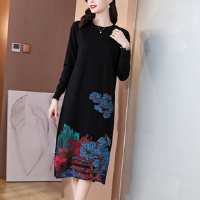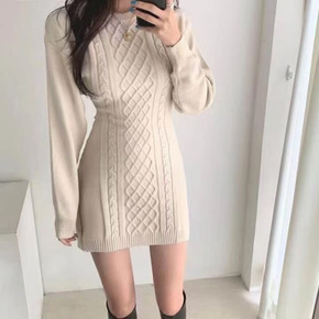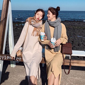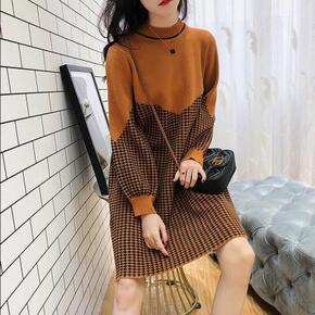 秋冬时尚套头打底毛衣裙女中长款韩版宽松2022新款...