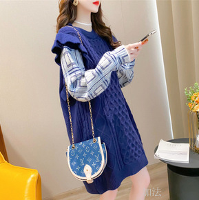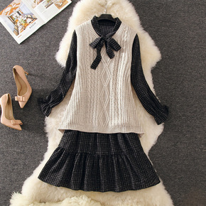 毛衣两件套秋季外套针织衫套装裙秋装女新款冬季打底针...