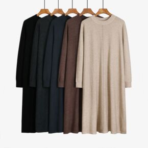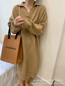 2022年秋季新款中长款过膝POLO针织连衣裙子宽...