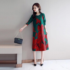 东南亚2019秋季新款花连衣裙印花宽松长袖显瘦长裙...