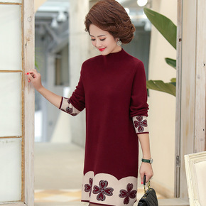 时尚妈妈装中长款加肥加大码毛衣新款中年女针织羊毛连...