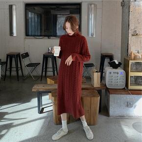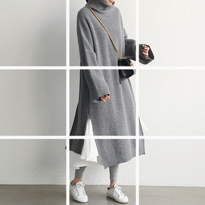 2022秋冬韩国毛衣裙套头高领针织打底衫加厚大码长...
