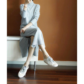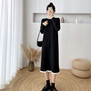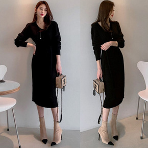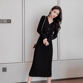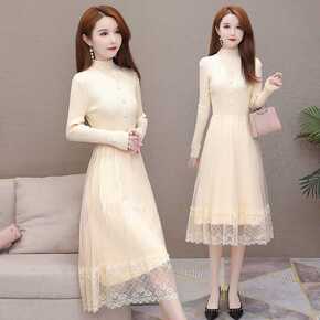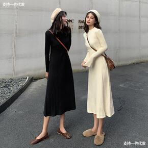女装长袖秋季2021针织毛衣春秋裙子打底过膝中长款...
