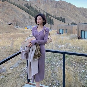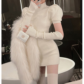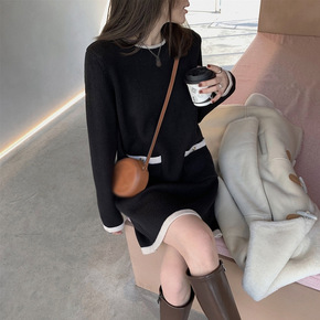 性感复古轻熟风打底毛衣裙2021年秋冬新款设计感交...