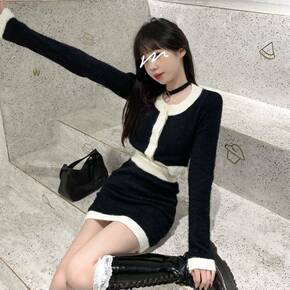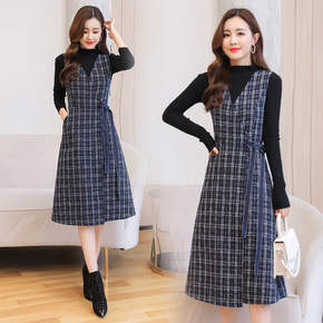 2021年法式灯芯绒吊带打底连衣裙毛衣套装秋冬配大...