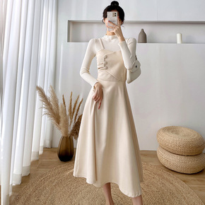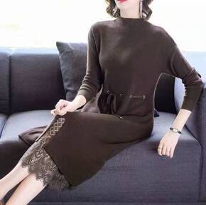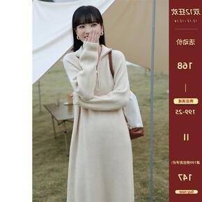 假两件连衣裙 女冬季女装新款半高领毛衣过过膝加...