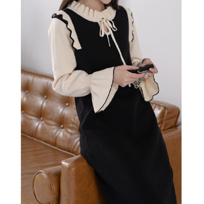 韩国小众ins百搭秋冬长款马甲针织毛衣连衣裙 女...