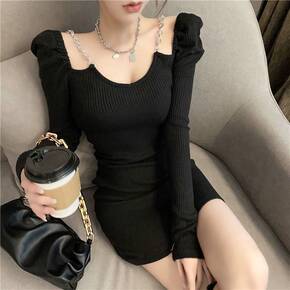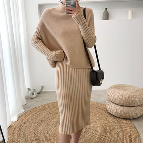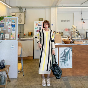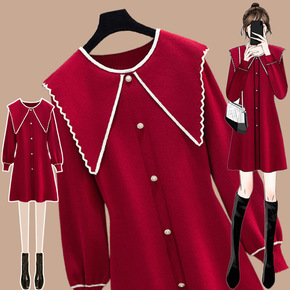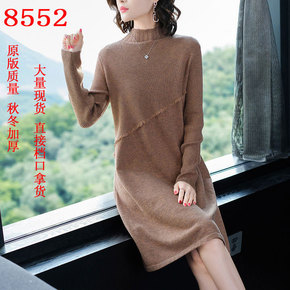 2020秋装冬新款连衣裙女装中长款长袖套头厚毛衣针...