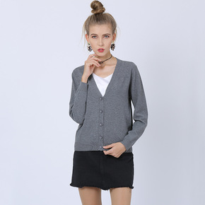 针织开衫女秋冬新款纯色针织衫 外套欧美大码长袖V领...